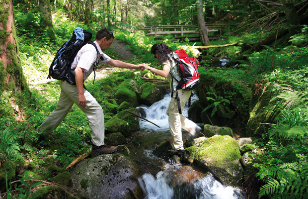 Ausgesetzte Pfade entlang steiler Felsklammen und gurgelnder Bäche, Rastplätze mit spektakulären Tiefblicken, bemooste Bäume und in der Sonne glitzernde Wassertropfen. Wutachflühen, Wutachschlucht, Schleifenbachfälle, Haslachschlucht, Windbergwasserfall, Hohwehraschlucht und Wehraschlucht sind Ziele für all jene, die es ans Wasser zieht, die gerne durch wilde Schluchten steigen, tosende Wasserfälle bestaunen, die natürliche Stille genießen und sich für eine Woche aus dem Alltag ausklinken möchten. Zwischendurch gibt es immer wieder grandiose Aussichtspunkte mit weiten Panoramen über das Gewinkel der Täler und Schluchten im Südschwarzwald bis hin zum fernen Alpenbogen. Kühe stehen auf kargen Hochweiden, irgendwo zirpt es am Wegesrand in den Blumenwiesen und gemütliche Gasthöfe in uralten Schwarzwaldhäusern warten auf hungrige Schluchtensteigwanderer.